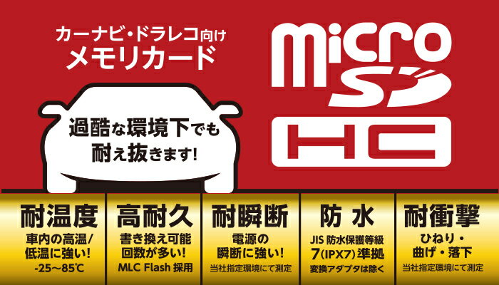 【商品説明】■ドライブレコーダー、カーナビに最適な、高耐久モデルのmicroSDHCメモリカードです。