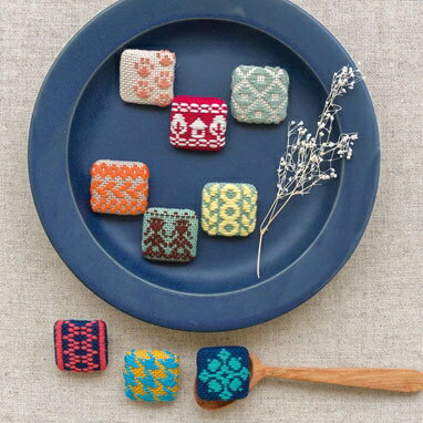 ◯出来上がりサイズ 約縦3cm×横3cm ◯キット内容 オリムパスこぎん糸(朱赤)〈224〉、 (青緑)〈224〉、(水色)〈392〉(綿100%) オリムパスNo.1100布〈コングレス〉 紺〈7〉、マスタード〈41〉(綿100%) くるみボタン 3組 こぎん針、図案付説明書 ◯打込目数 18カウント/1インチ・約70目/10cm ◯備考 仕立て済みではありません。