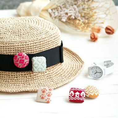 .送料無料 オリムパス こぎん刺し こぎん キット くるみボタン ( 四角 ) モダン 3個セット こぎん70 刺しゅう 伝統的 刺繍 技法