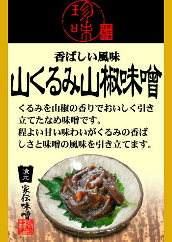 スパイシーな山椒の香りと山くるみの香ばしさの上品なおかず味噌です。